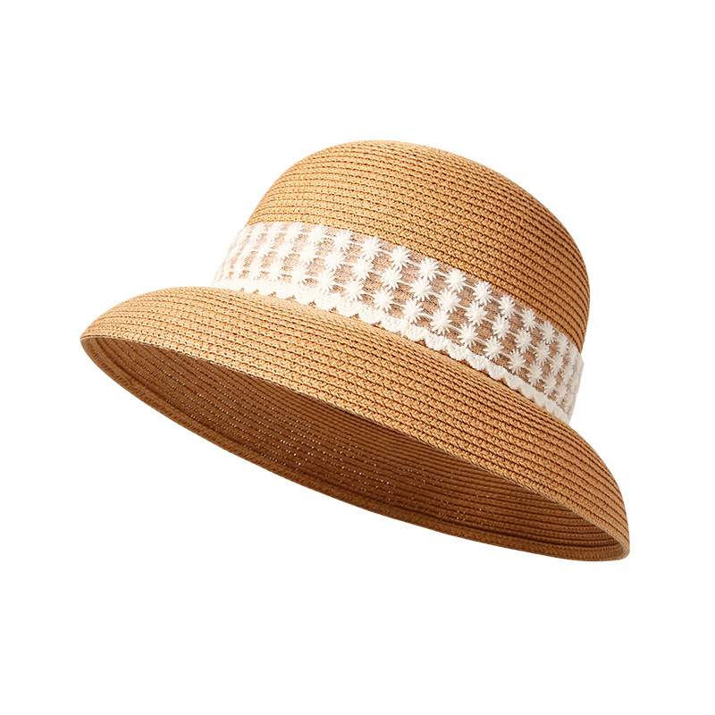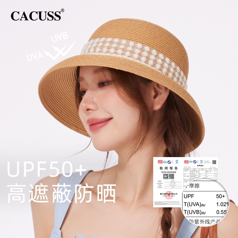 CACUSS帽子女夏季度假草编防晒帽防紫外线遮阳帽大帽檐沙滩太阳帽