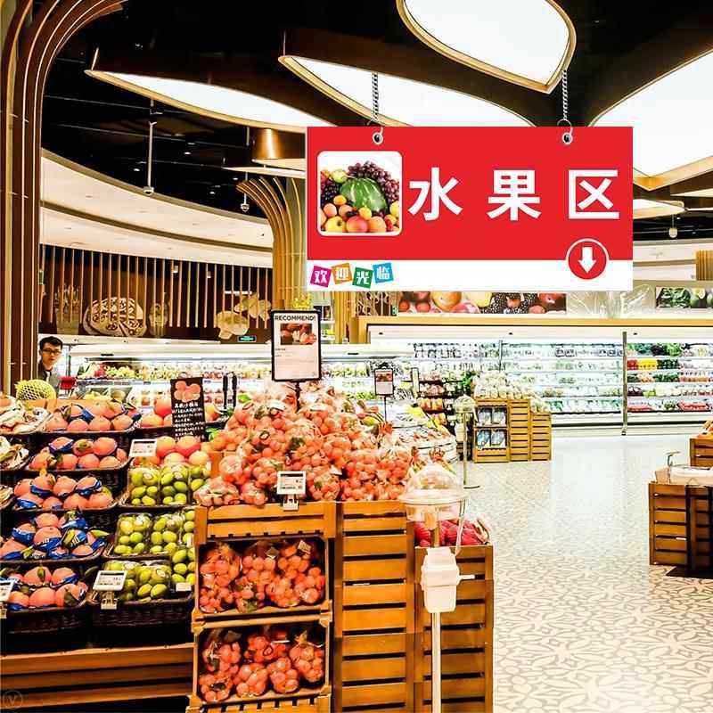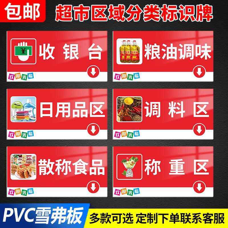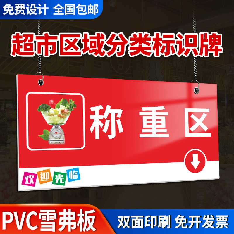 PVC雪弗板超市区域分类标识牌粮油调味称重区日用品区引导牌吊牌悬挂牌双面送挂炼炼超市分区指示牌提示牌定