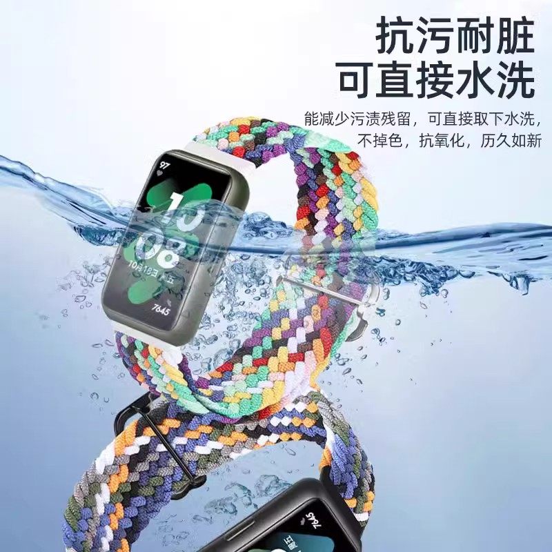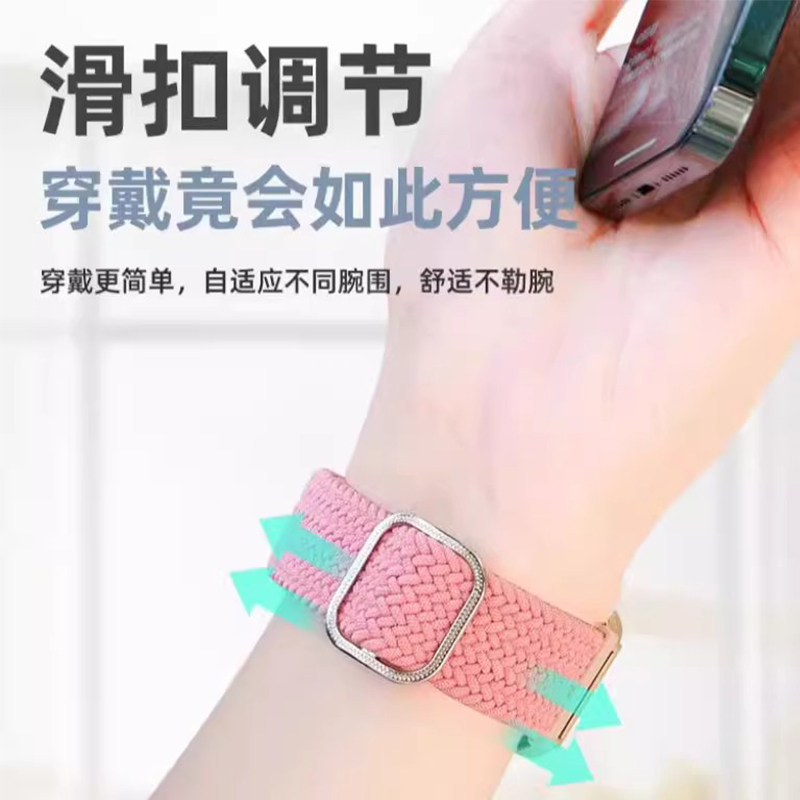 适用小米手环8表带10/9//7/6编织5NFC手表3代4尼龙腕带透气软弹力智能运动男款女生夏天磁吸彩虹舒适黑色回环