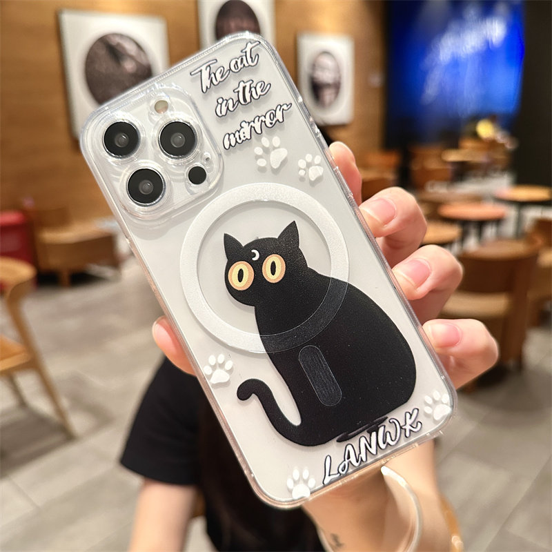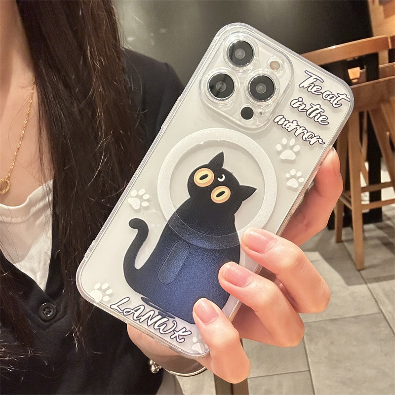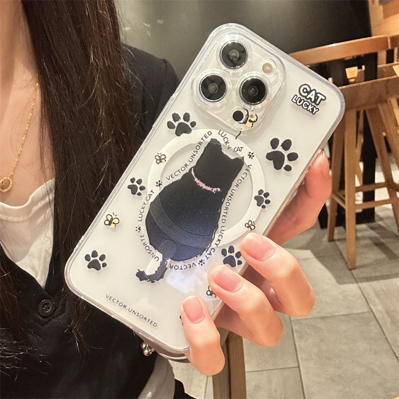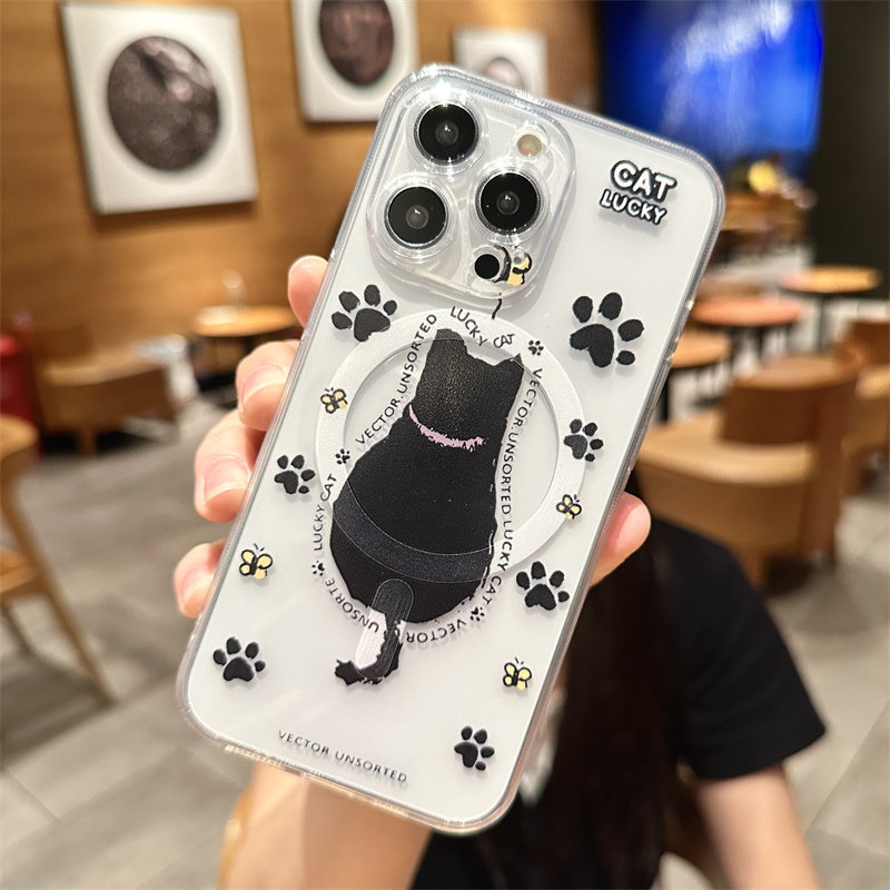 磁吸Magsafe适用苹果17promax手机壳幸运猫咪iPhone16情侣新款12硅胶软壳11防摔简约高级感14plus创意黑色ins