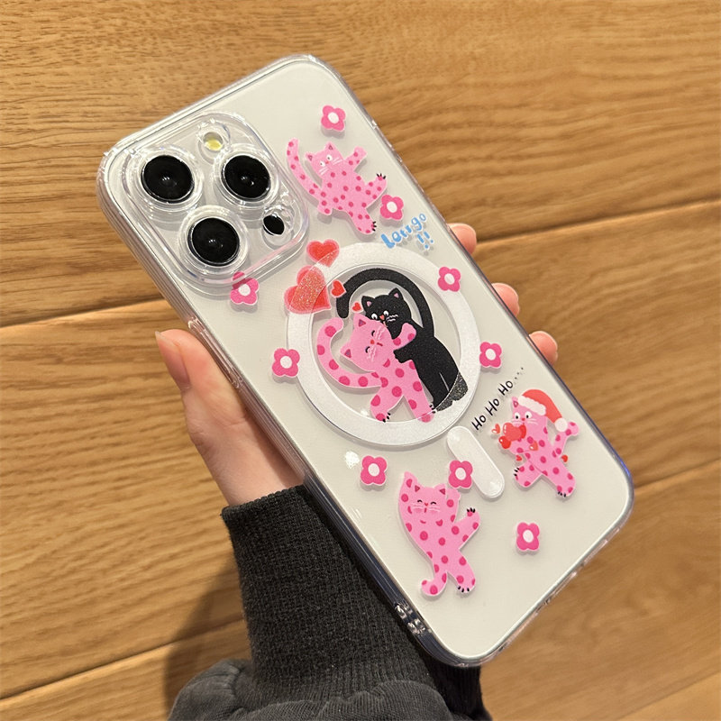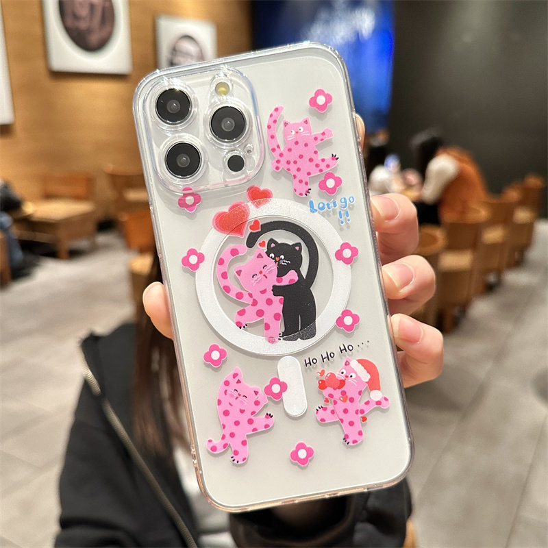 Magsafe磁吸适用苹果15promax手机壳17情侣iPhone14套SE4华为mate60新款透明11女12粉色豹纹猫咪15plus趣味
