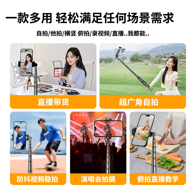 2025新款手持自拍杆拍照一体式拍照神器加长旋转蓝牙通用直播支架