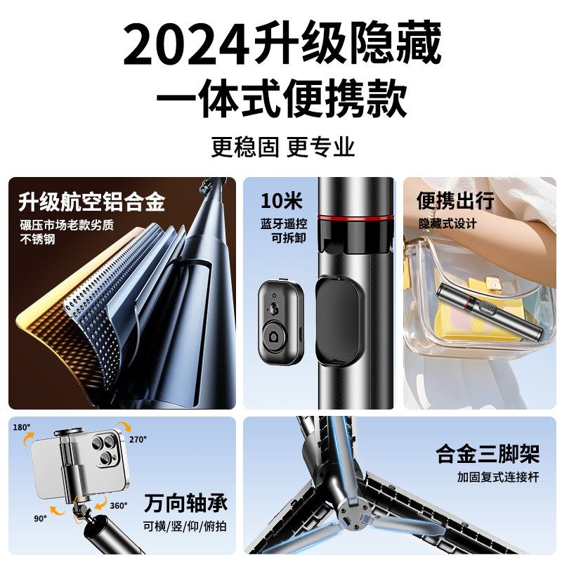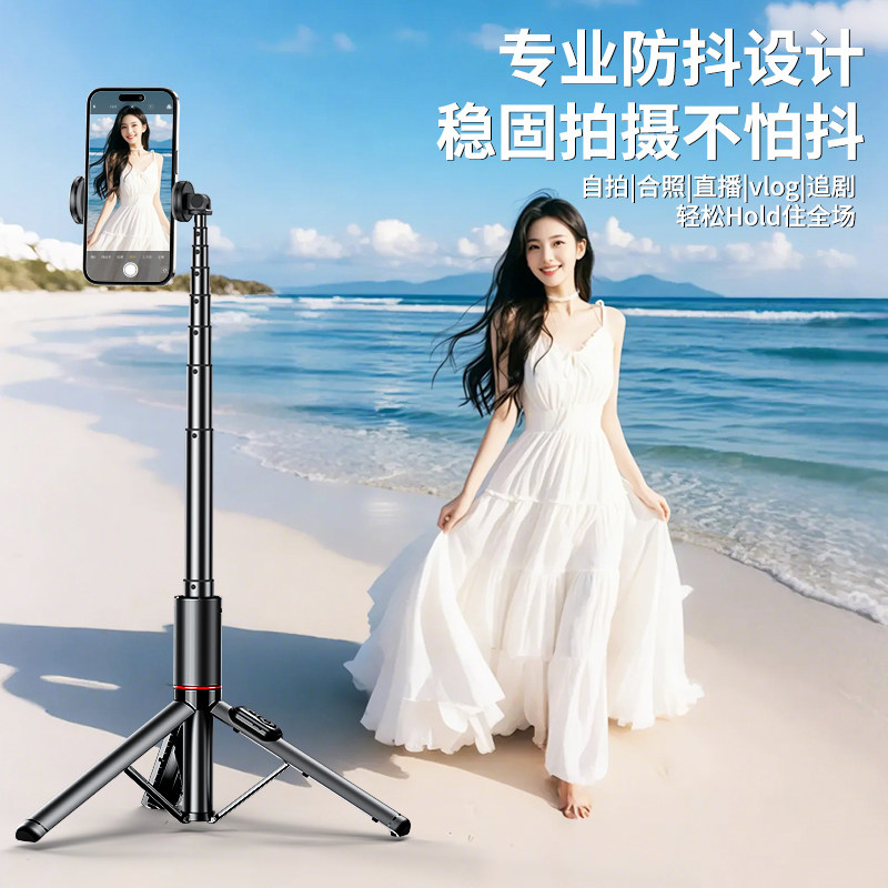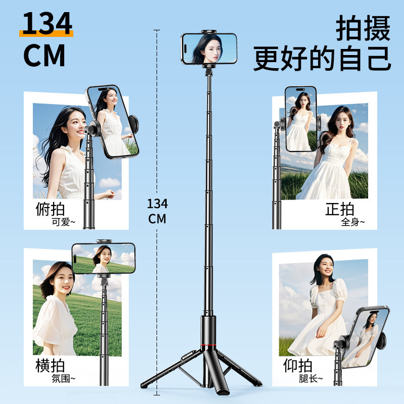 2025新款自拍杆一体式落地三脚架拍照神器通用旅游便携手持防抖360度旋转直播手机支架蓝牙自拍vlog户外拍摄
