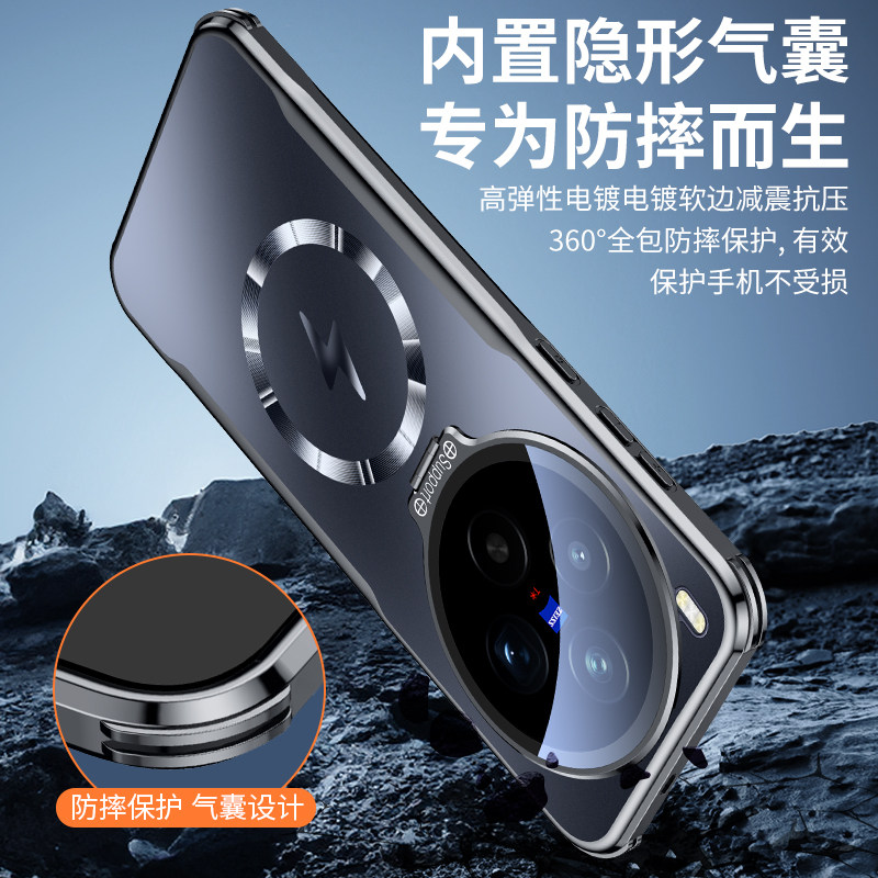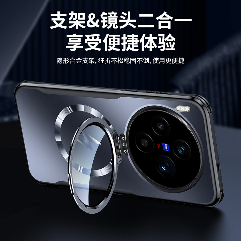 适用vivox300pro手机壳新款x300创意镜头膜支架x200磁吸x200pro全包防摔x100pro高端商务磨砂套promini爆款