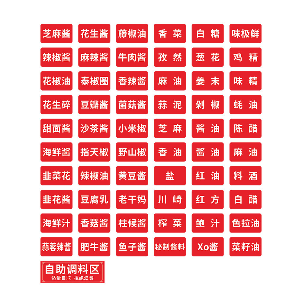 调料贴纸小火锅串串蘸料名称贴纸火锅店自助餐厅酒店厨房佐料贴防水防油家用瓶罐分类标签贴