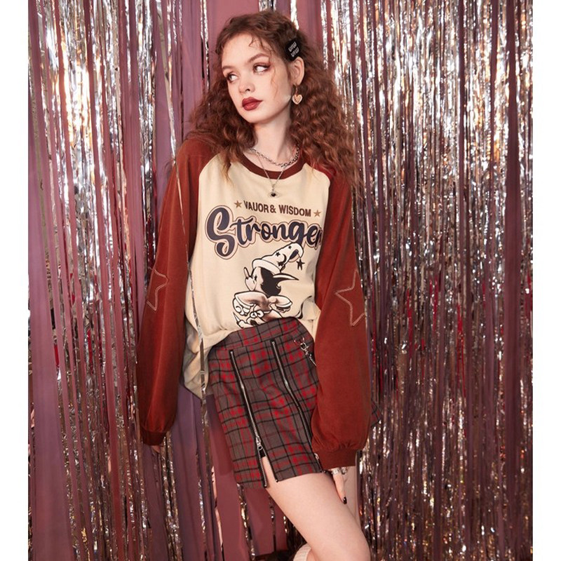 F383 美式朋克长袖连帽T恤哥特风防晒罩衫修身薄纱上衣女辣妹夏潮