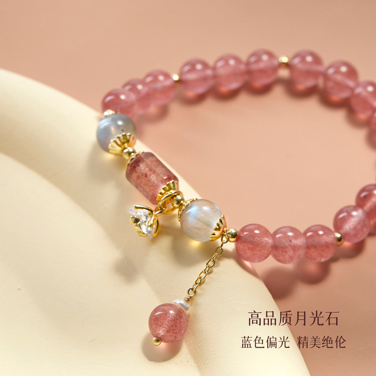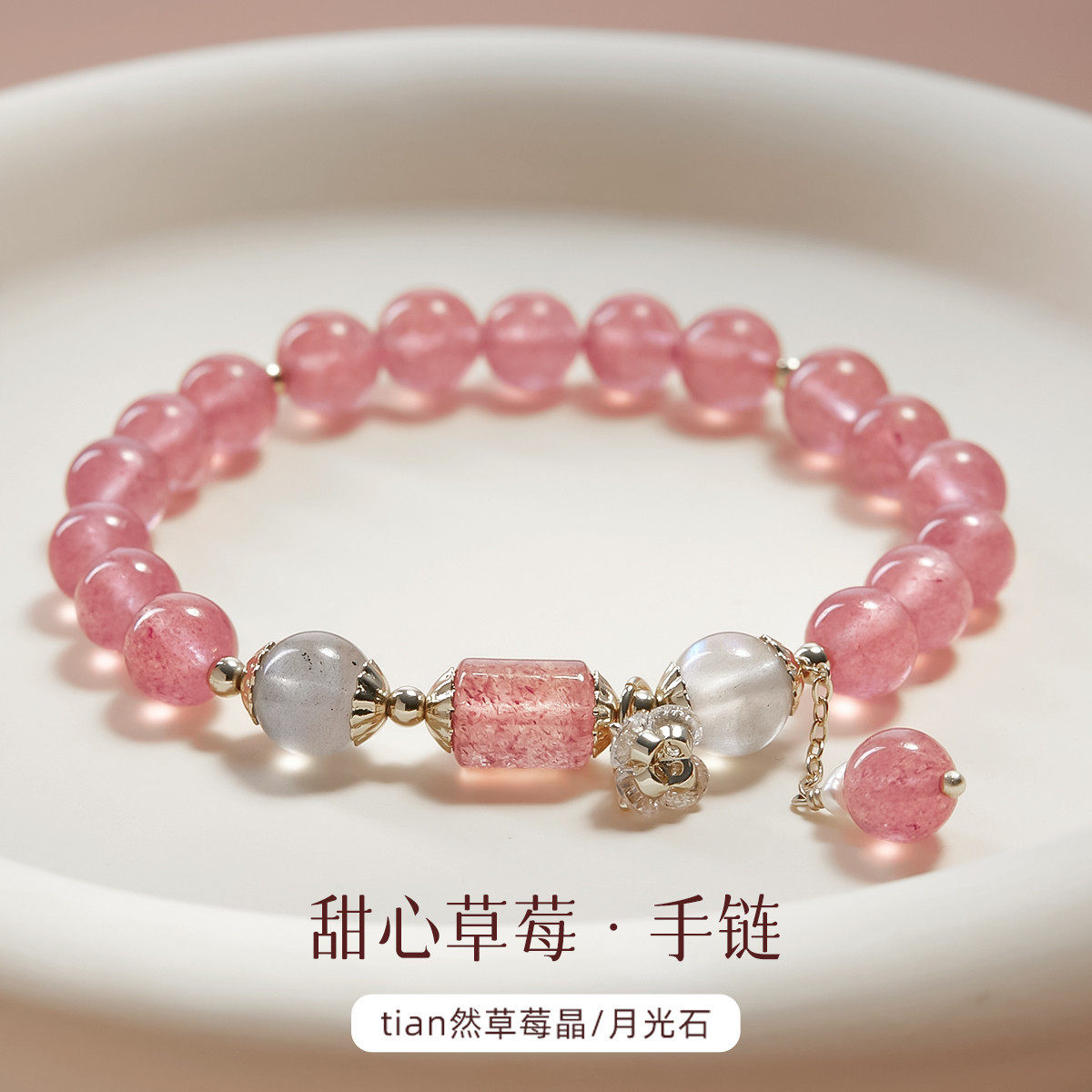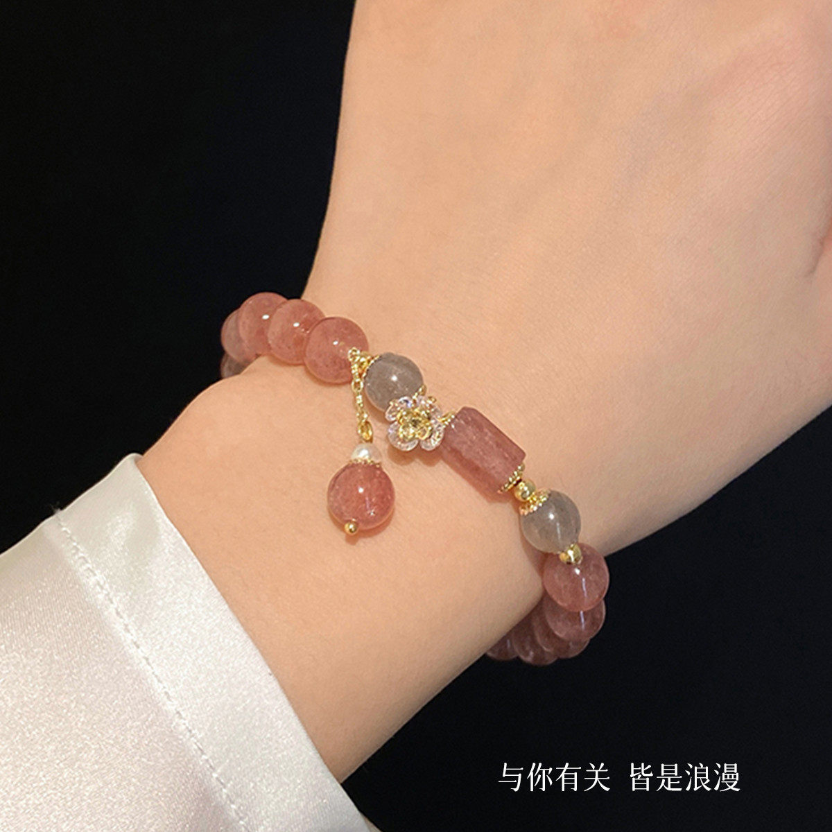 天然草莓晶串珠手链女轻奢小众精致粉色水晶招桃花手串女学生闺蜜