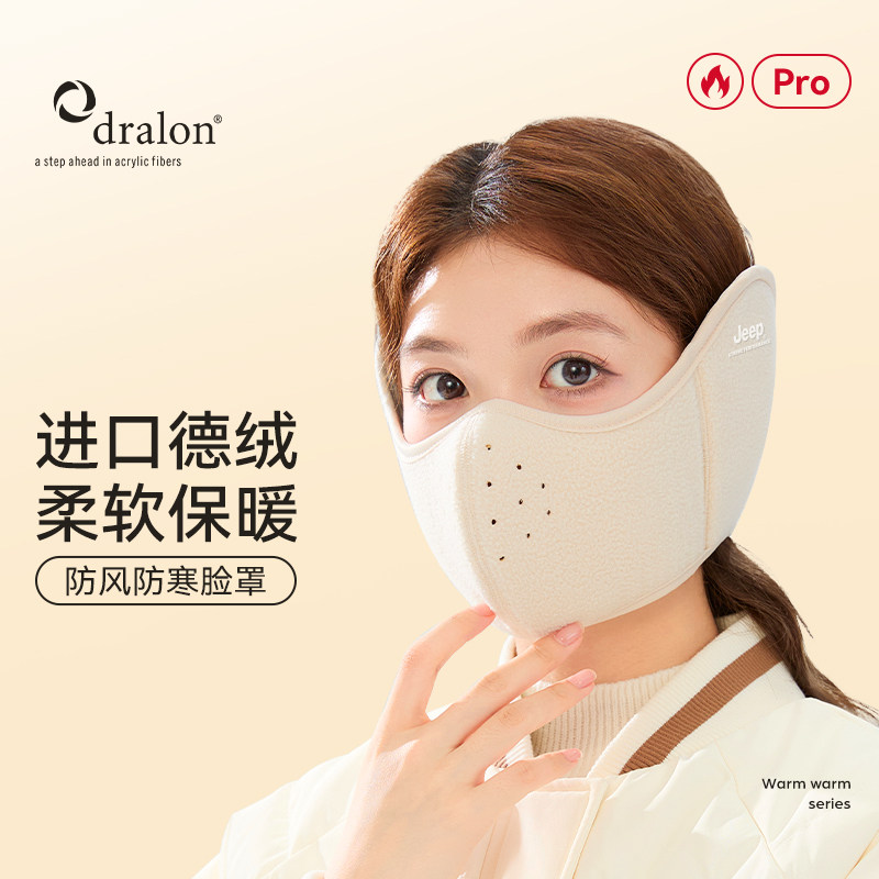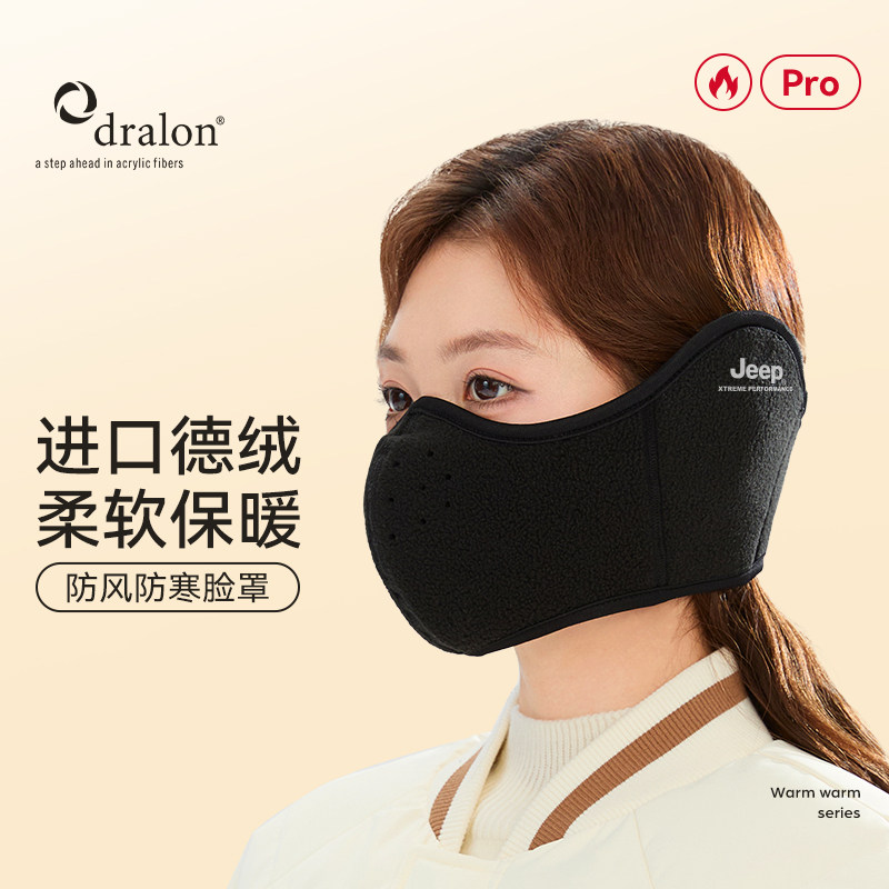 jeep吉普女士耳罩护脸二合一口罩冬季防风防寒防冻保暖德绒面罩冬