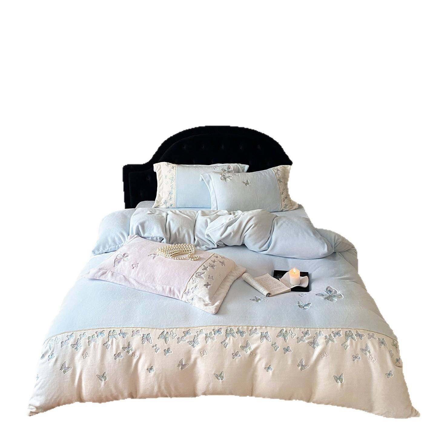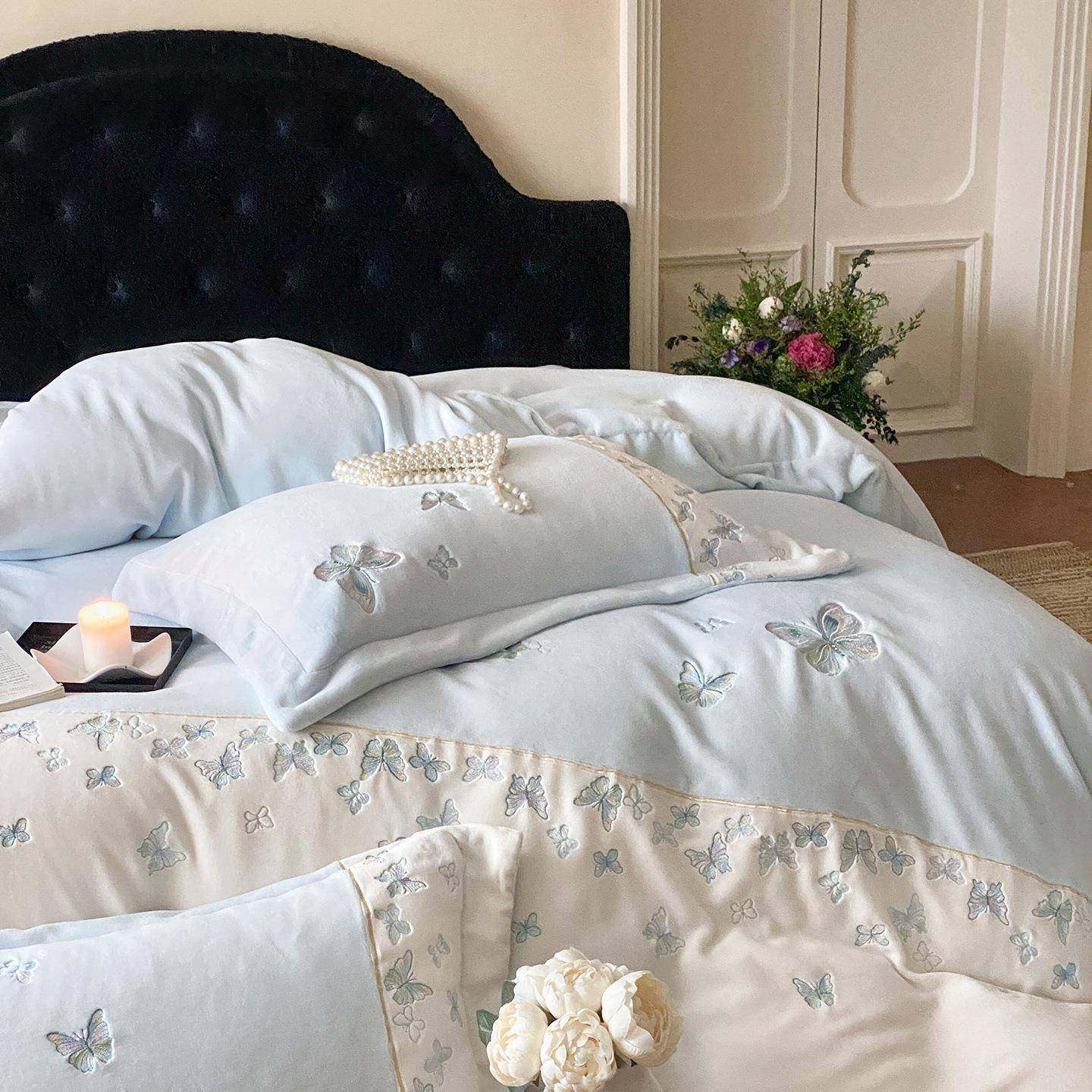 法式加厚230克全消光牛奶四件套冬季保暖刺绣花蝴蝶床单被套床品