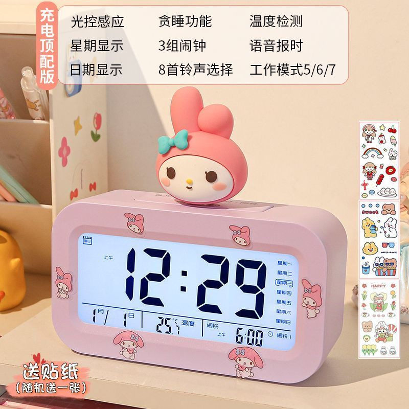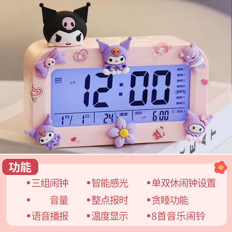 凯蒂猫桌面闹钟学生专用起床神器儿童台钟女生夜光充电款库洛米
