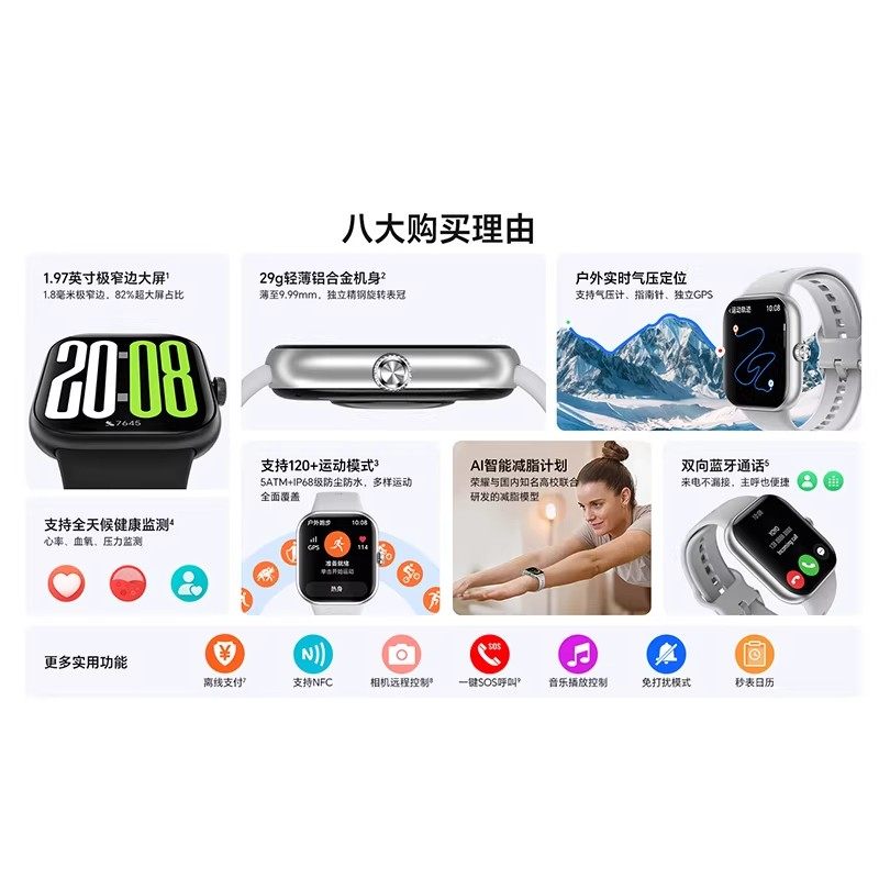 【政府补贴15%】荣耀手表X5 智能运动手表 具备窄边大屏 轻薄机身 户外实时气压定位等多功能运动手表