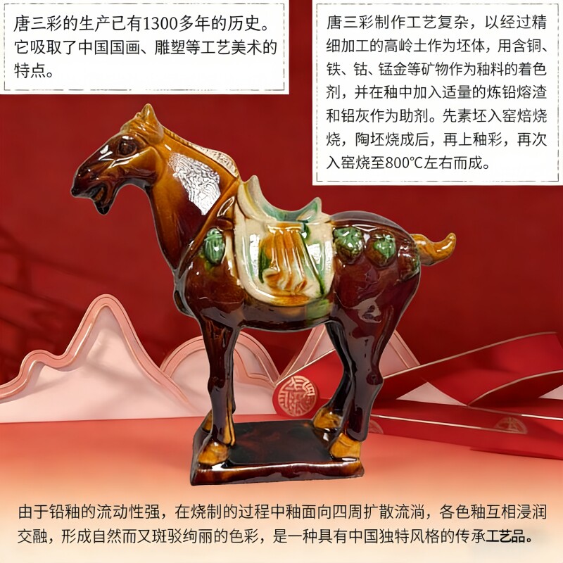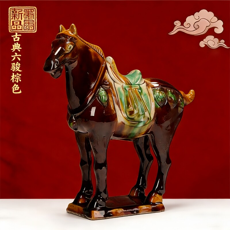 唐三彩马陶瓷马摆件六骏马家居客厅办公装饰工艺礼品招财摆件北派