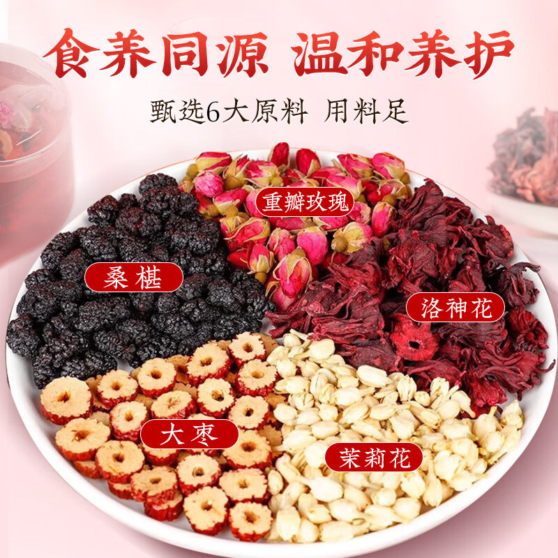 北京同仁堂洛神花玫瑰陈皮桑葚花茶美容养颜茄养生茶包补气气血