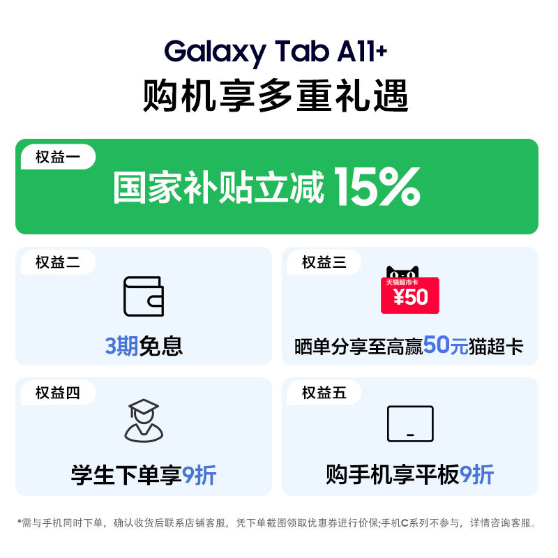 Samsung/三星 【国家补贴】Galaxy Tab A11+ 平板电脑2026新品上市学生学习追剧办公网课平板电脑