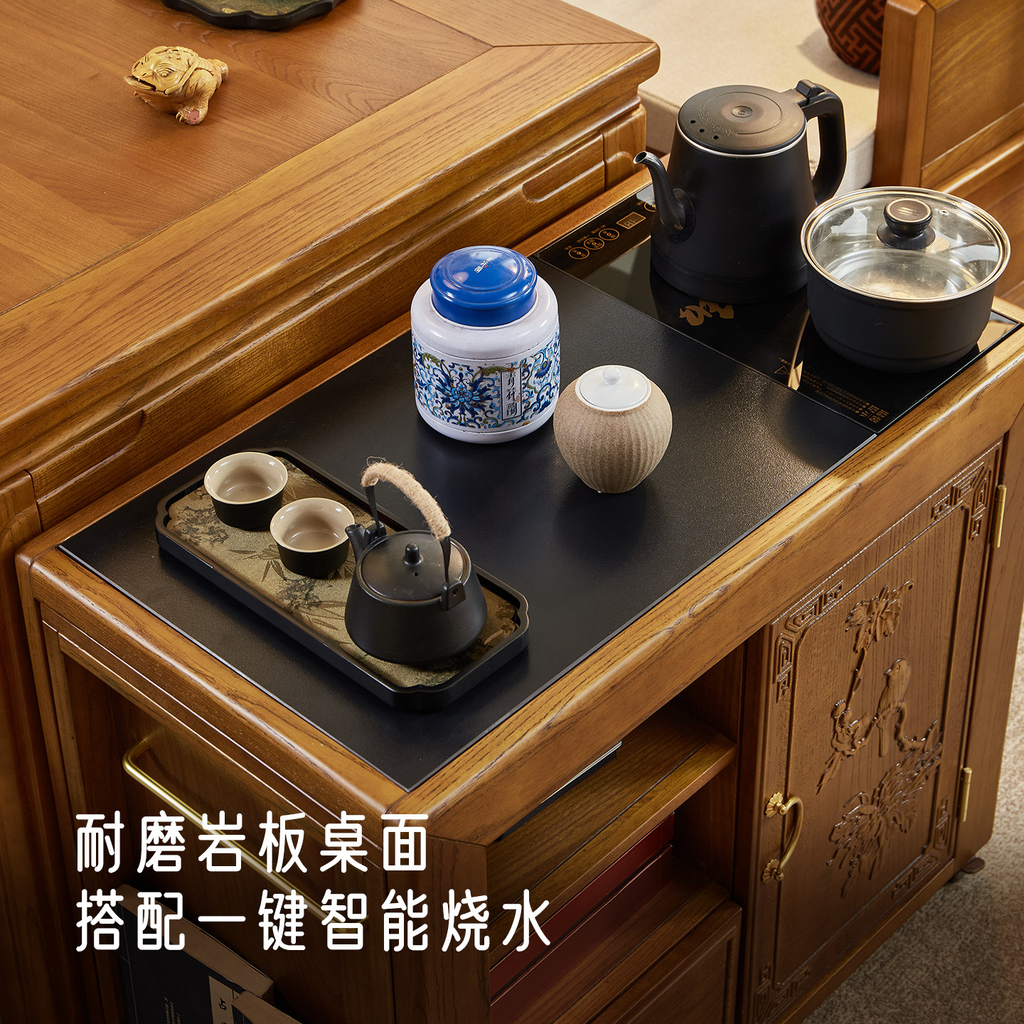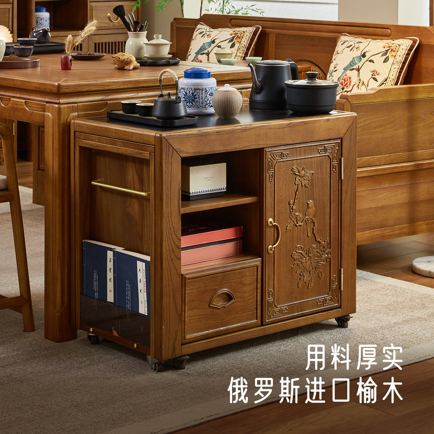 政府补贴新中式可移动茶水柜实木茶桌边柜边几阳台小型烧水泡茶台