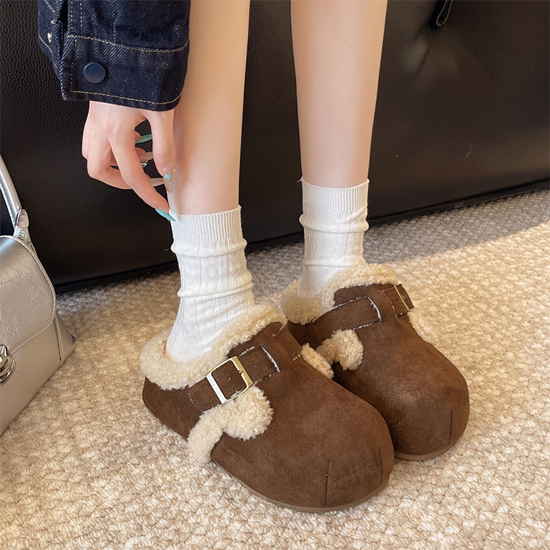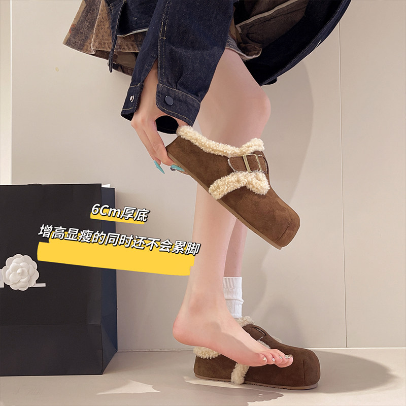 叁叔家~内增高勃肯鞋女加绒秋冬保暖毛毛半拖外穿厚底博肯鞋