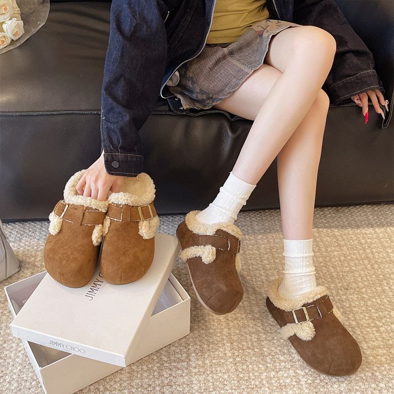周雨彤同款厚底勃肯鞋女2025新款冬季加绒半拖鞋外穿增高穆勒鞋子