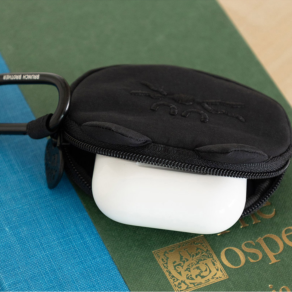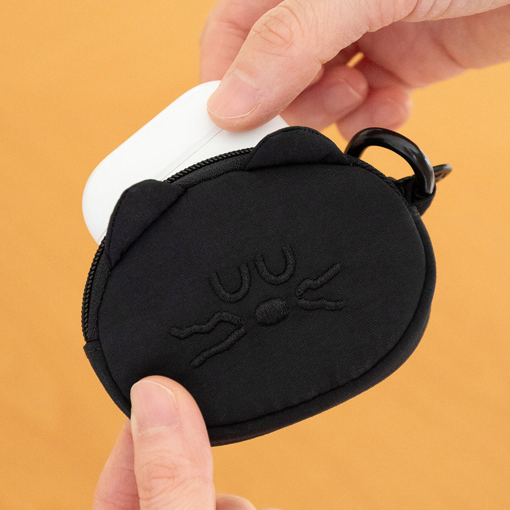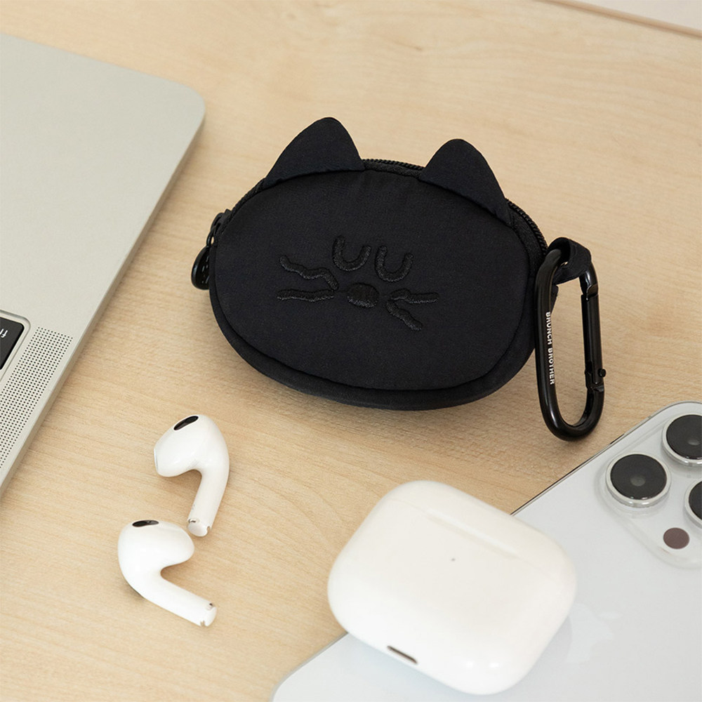 韩国BRUNCH BROTHER卡通可爱猫咪耳机包零钱包挂件收纳袋无线蓝牙耳机保护套通用苹果AirPods pro黑色便携