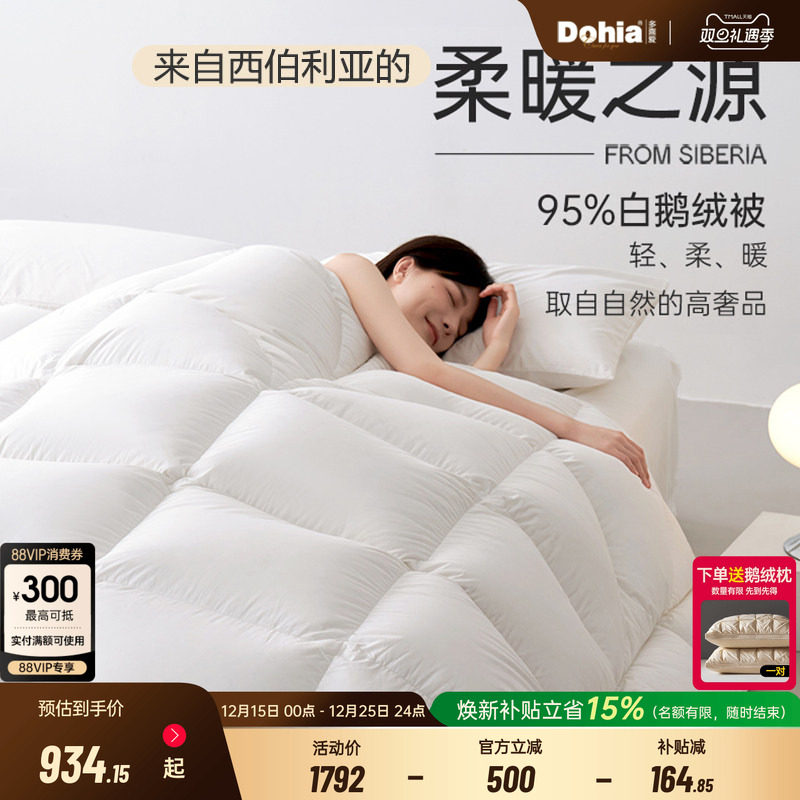 多喜爱羽绒被95白鹅绒被春秋被冬被加厚保暖被子被芯西伯利亚Y