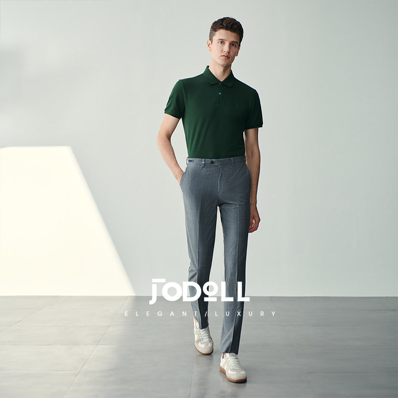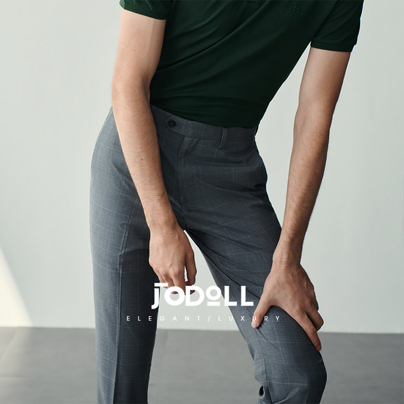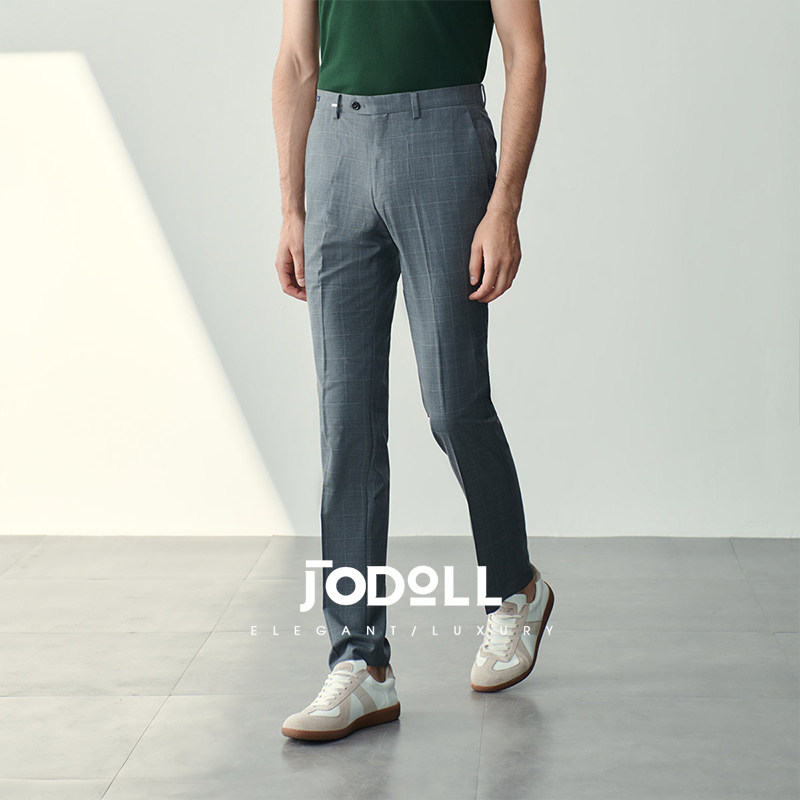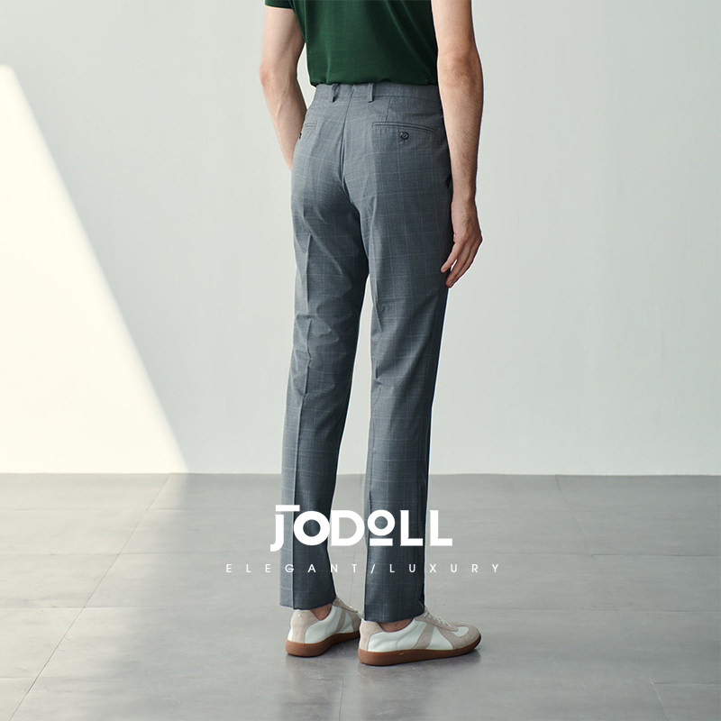 JODOLL乔顿【绵羊毛桑蚕丝】西裤男商务休闲修身灰色格子西装长裤