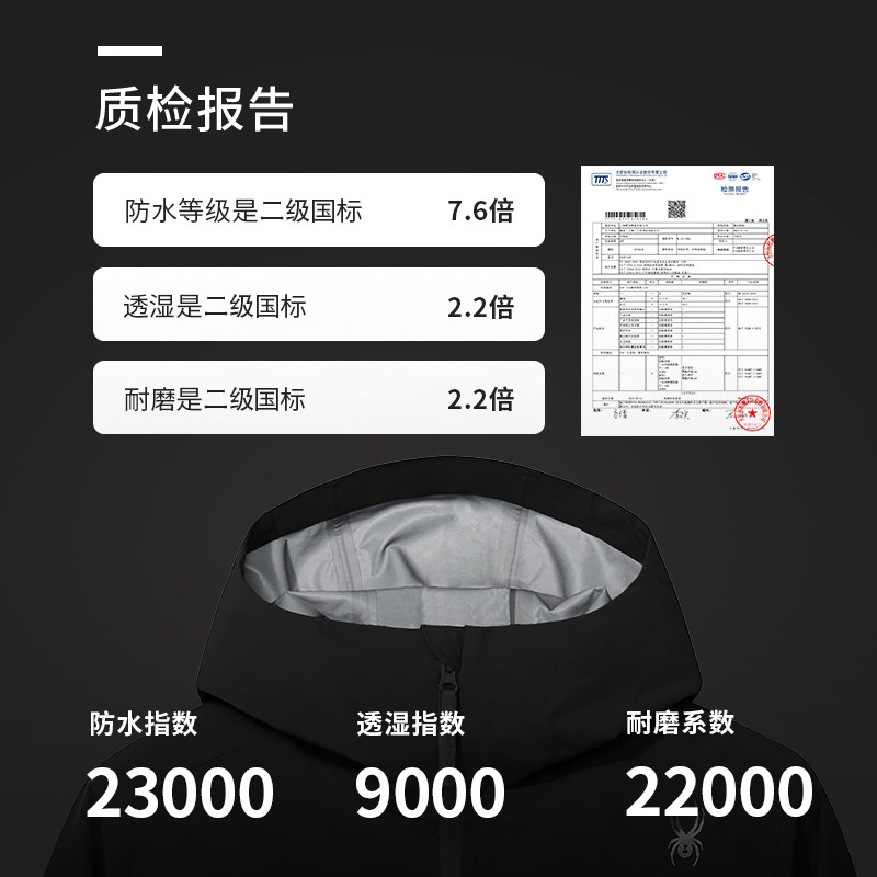 SPYDER蜘蛛秋冬男子SKI LIFE防风防泼水冲锋衣连帽外套23EF133M