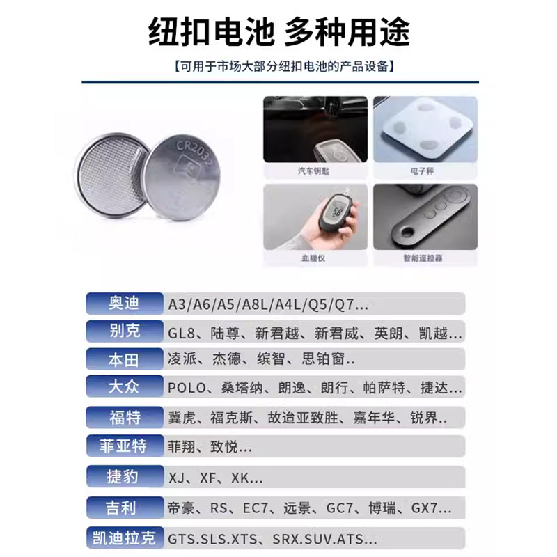 CR2032/CR2025/CR2016/CR2450/CR1620/CR1220纽扣电池3v防丢器电子秤温度计主板奥迪本田别克大众车钥匙电池