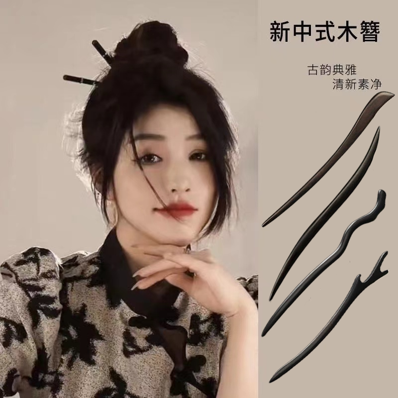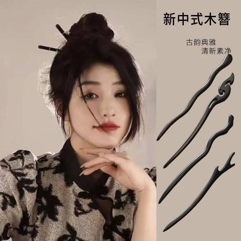 新中式古风发簪简约现代高级感木质簪子日常盘发木头手工簪中国风