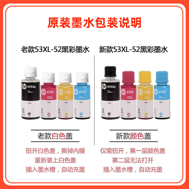适用惠普GT53XL 52墨水 原装310 410 510 518 519 538 5810打印机