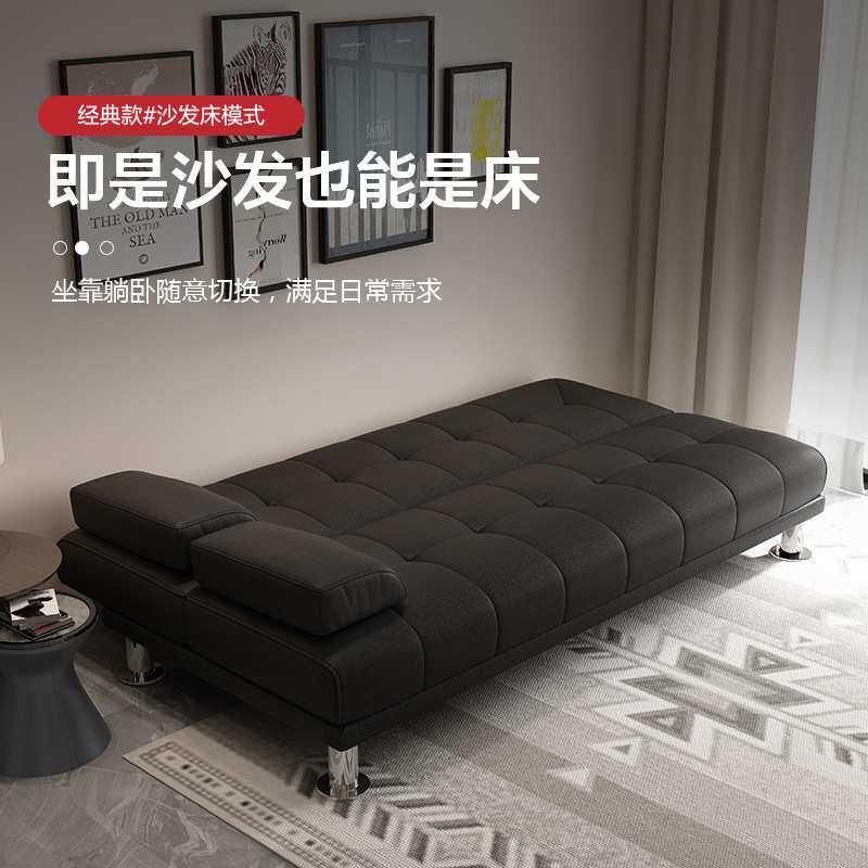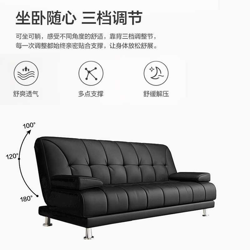 折叠两用沙发床黑可经济沙发现代简约办公室多功能小户型皮艺三人