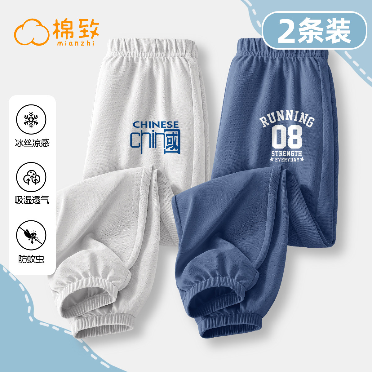 棉致童装男童裤子夏季薄款国潮风男大童运动裤男孩夏装儿童防蚊裤