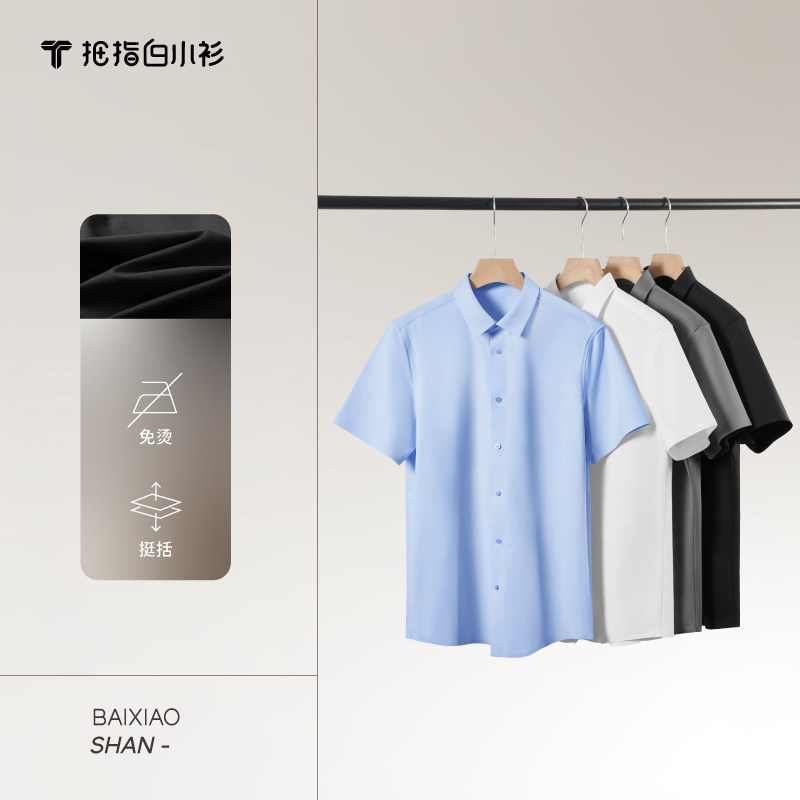 拇指白小衫2025夏季高支高密无痕短袖方领衬衫纯色赛络纺200s免烫