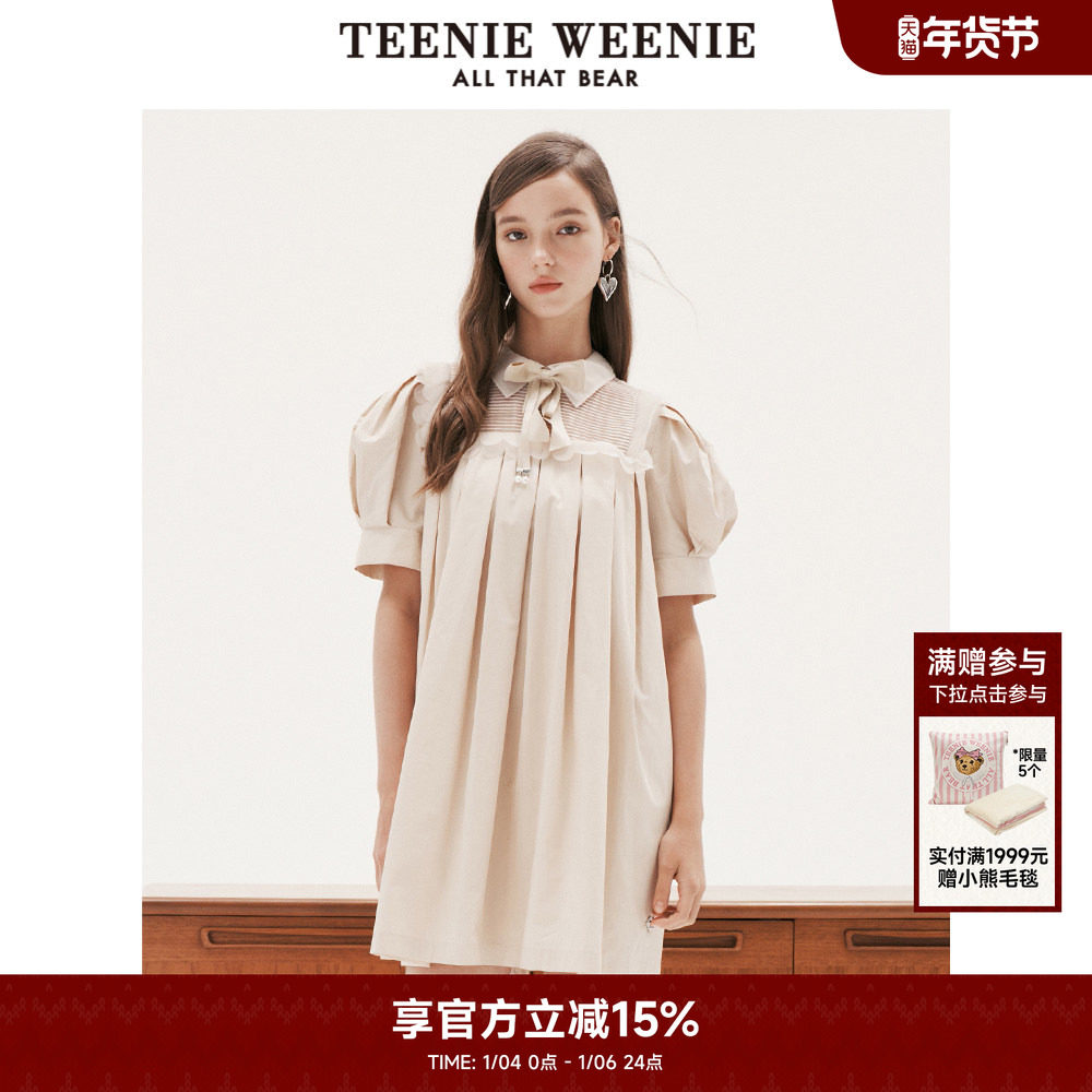 【赵露思同款】TeenieWeenie小熊奥莱泡泡袖网纱拼接连衣裙公主裙