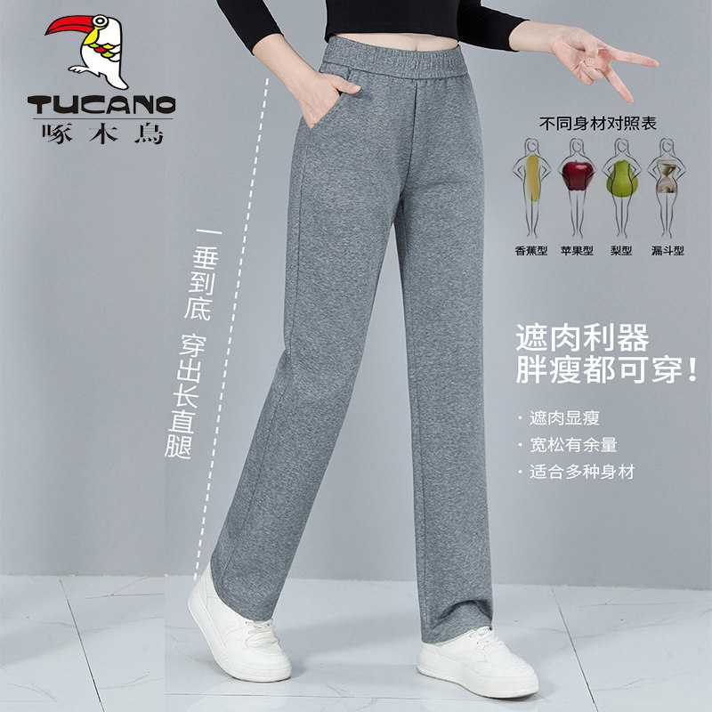 啄木鸟运动裤女春秋款直筒宽松大码垂坠感高腰显瘦小个子窄版阔腿