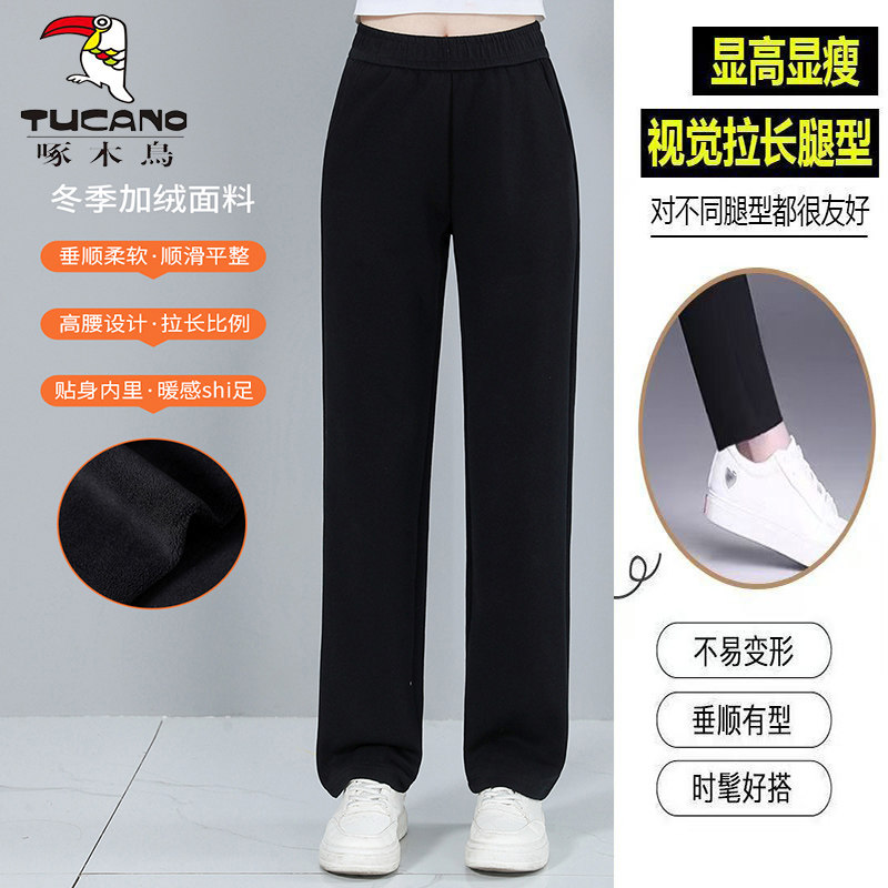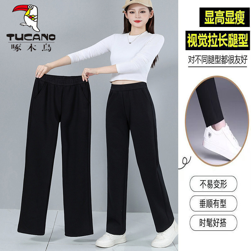 啄木鸟休闲裤女秋冬款2025新款高腰显瘦小个子宽松直筒阔腿长裤子