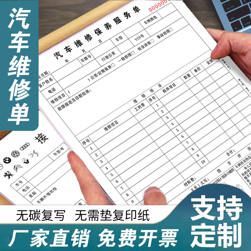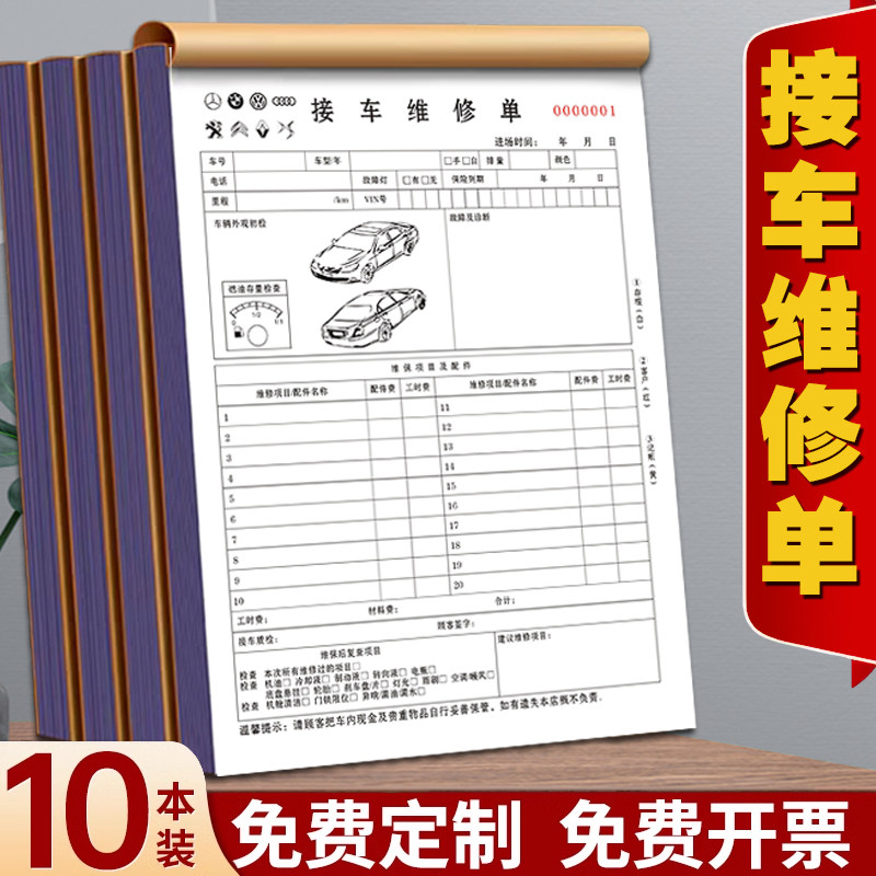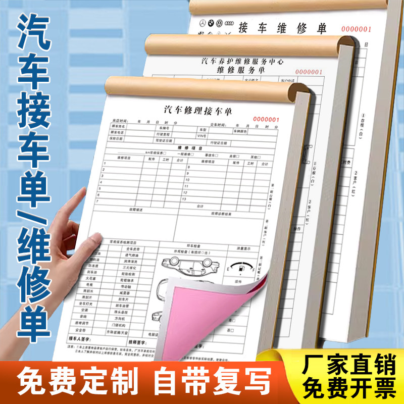 汽车维修工单接车单三联维修清单汽修厂派工施工保养记录登记开单本修车店车辆报修明细表钣金喷漆销售报价单