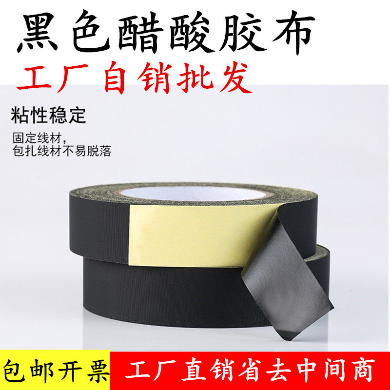 批发黑色醋酸胶布电线包扎液晶屏手机维修屏线排线汽车线束固定绝缘胶纸电器绝缘抗老化抗腐蚀耐高温醋酸胶带