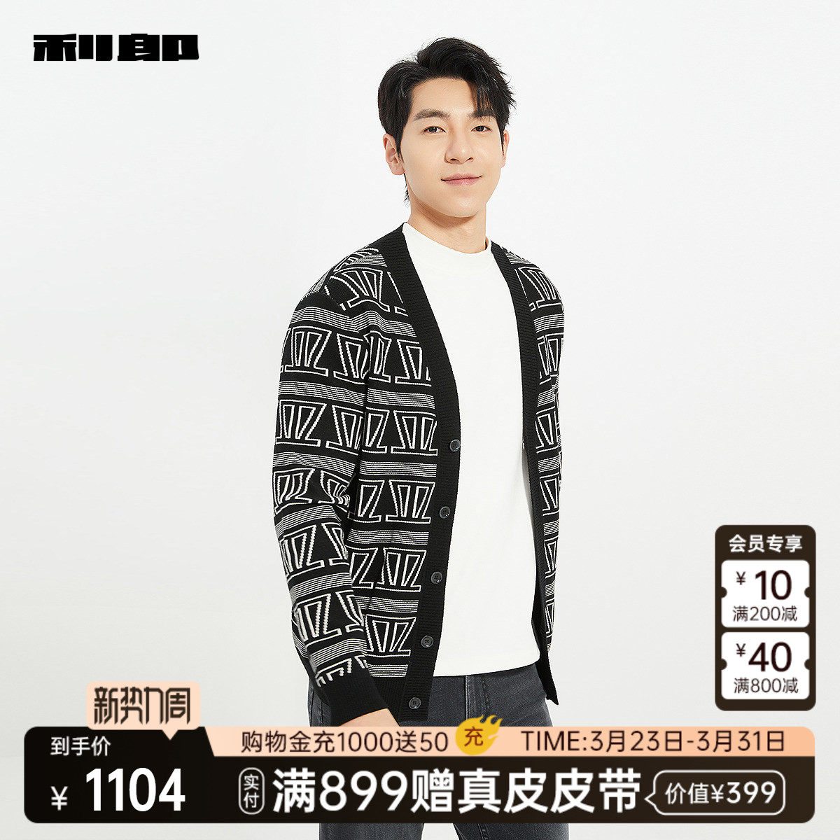 【商场同款】利郎官方 V领提花休闲毛衫男士春秋款毛衣25QMS9071S