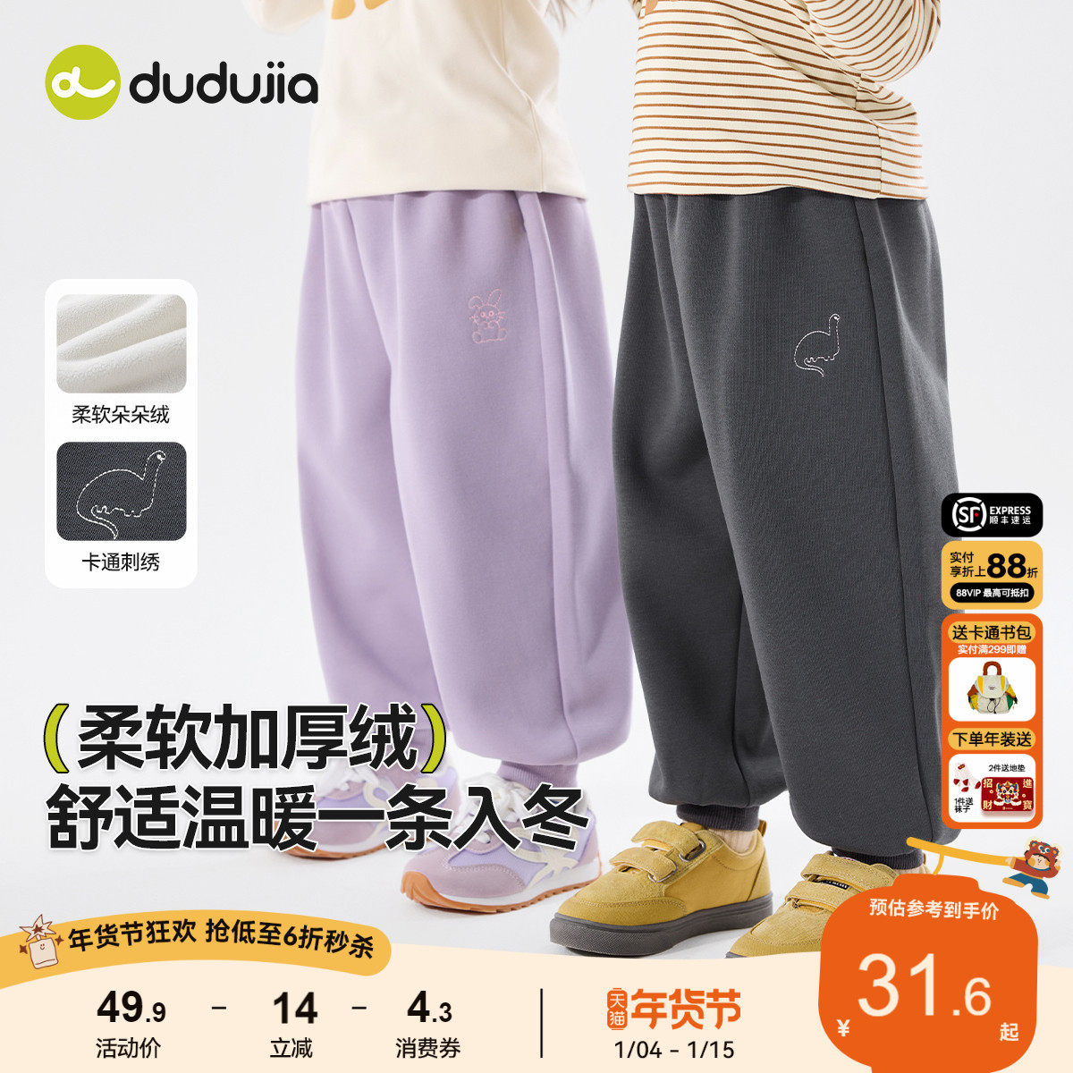 嘟嘟家儿童裤子秋冬宝宝长裤冬季男童冬装女童休闲裤柔软加厚加绒