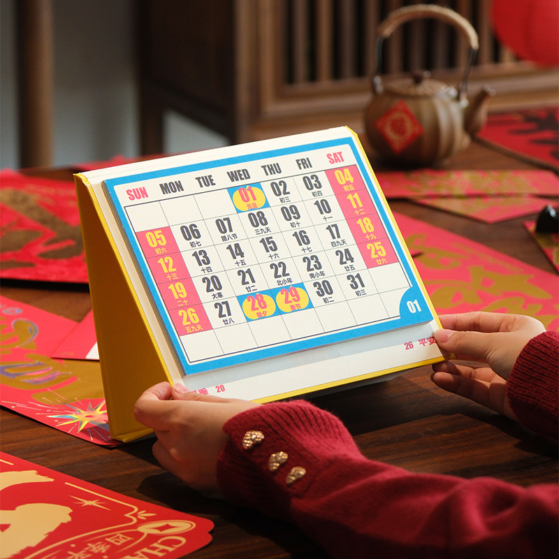 台历2026年新款日历桌面摆件办公室中国风马年创意翻页工位工作打卡计划本礼盒企业广告红色喜庆礼品月历定制