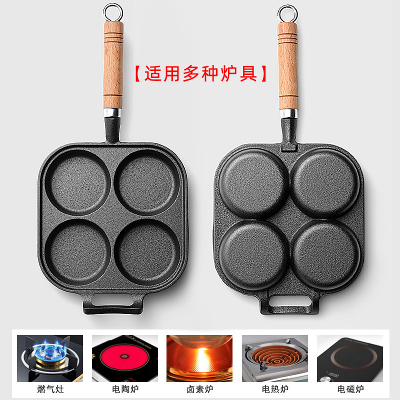 煎蛋锅铸铁加厚四孔煎锅鸡蛋汉堡模具不易粘煎饼方形不粘早餐燃气