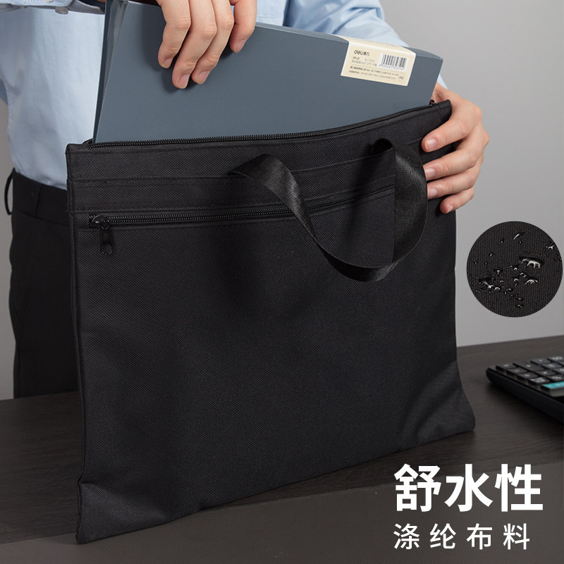 得力文件袋手提袋公文袋加厚帆布拉链袋文件收纳袋商务电脑包公文包学生补习袋包档案包文件夹5840手提包