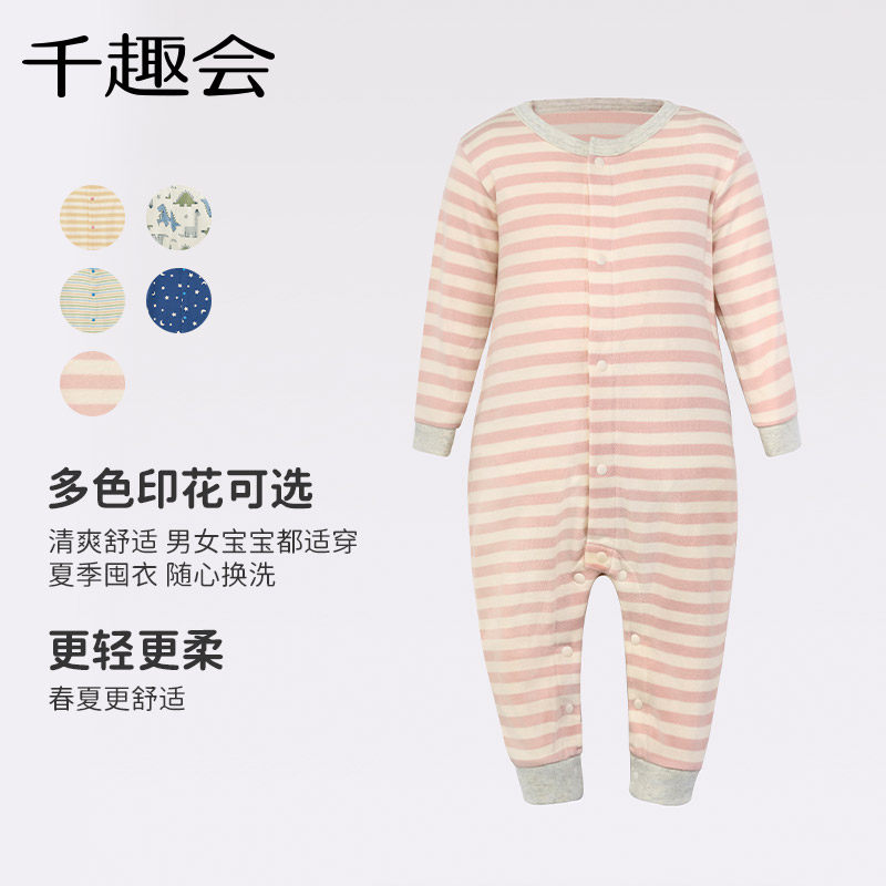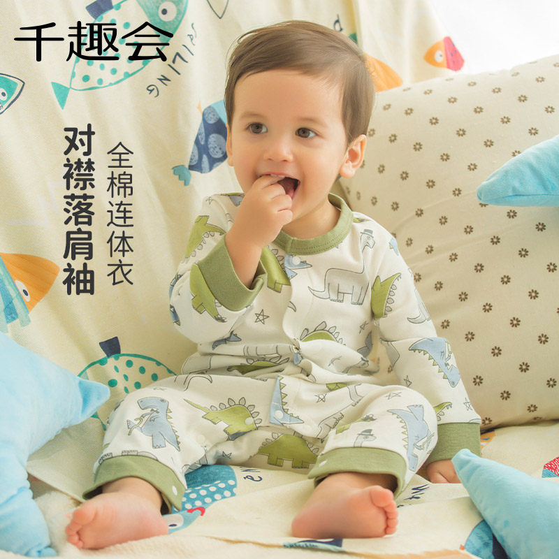 千趣会婴幼儿秋装连体衣纯棉舒适长袖落肩袖男女宝宝爬服包屁衣