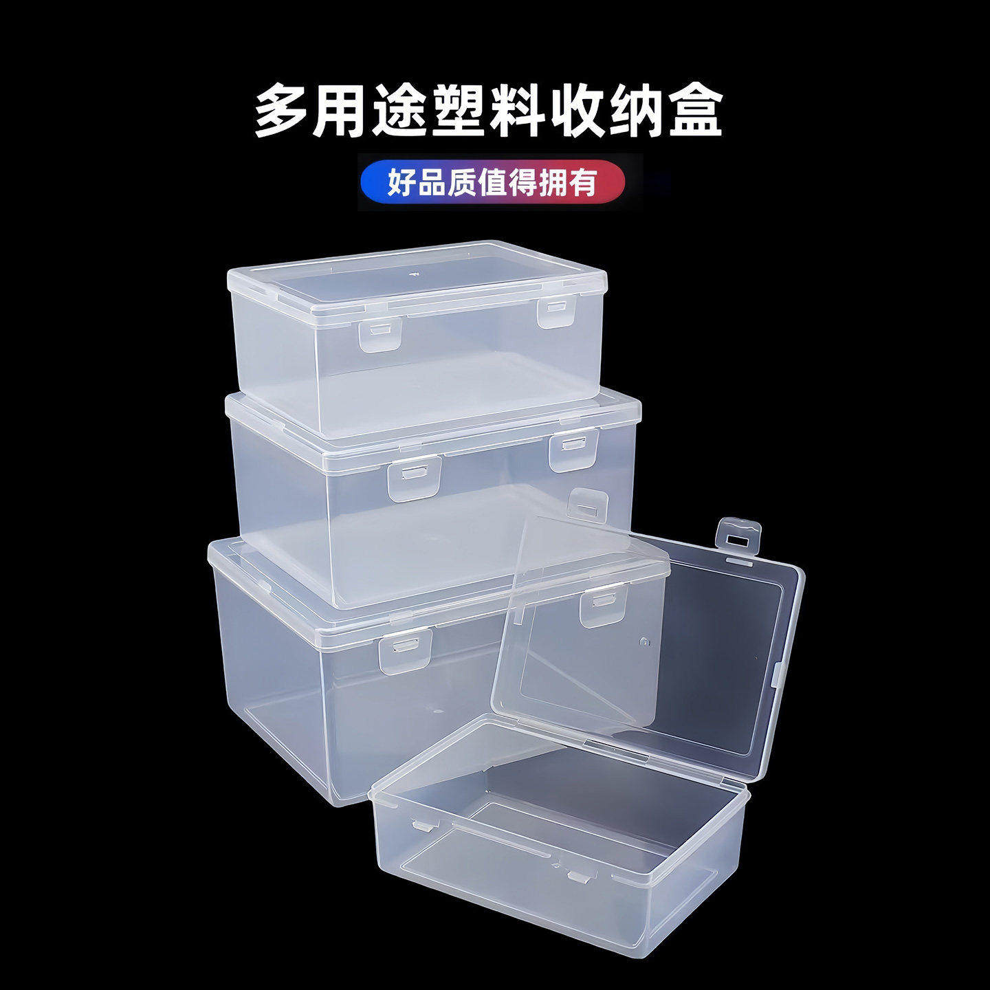 透明收纳盒盒子工具长方形带盖收纳盒塑料盒卡片文具盒首饰收纳盒