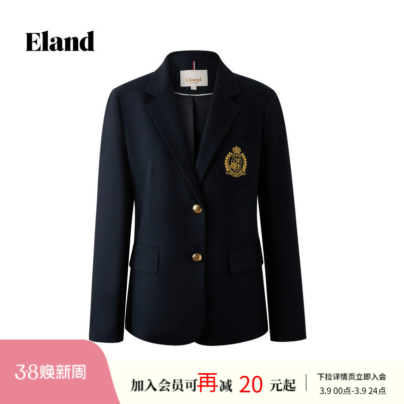 Eland衣恋西装女时尚商务刺绣徽章长袖外套2026春夏新款