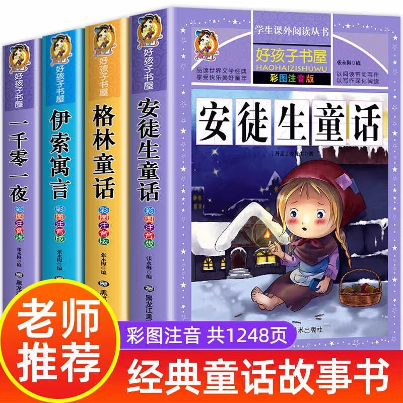 安徒生童话格林童话全集彩图注音版全4册一千零一夜伊索寓言儿童故事书小学生一二年级阅读课外书必读带拼音绘本幼儿读物睡前故事