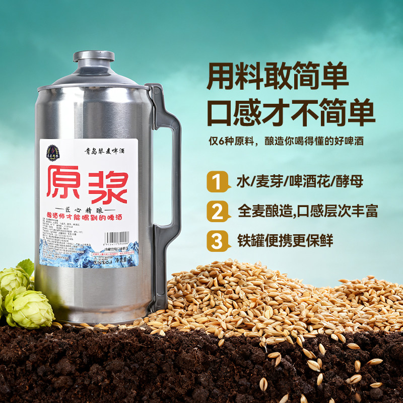 青岛大花13度原浆啤酒2L网红大桶全麦精酿白啤鲜啤桶装新鲜