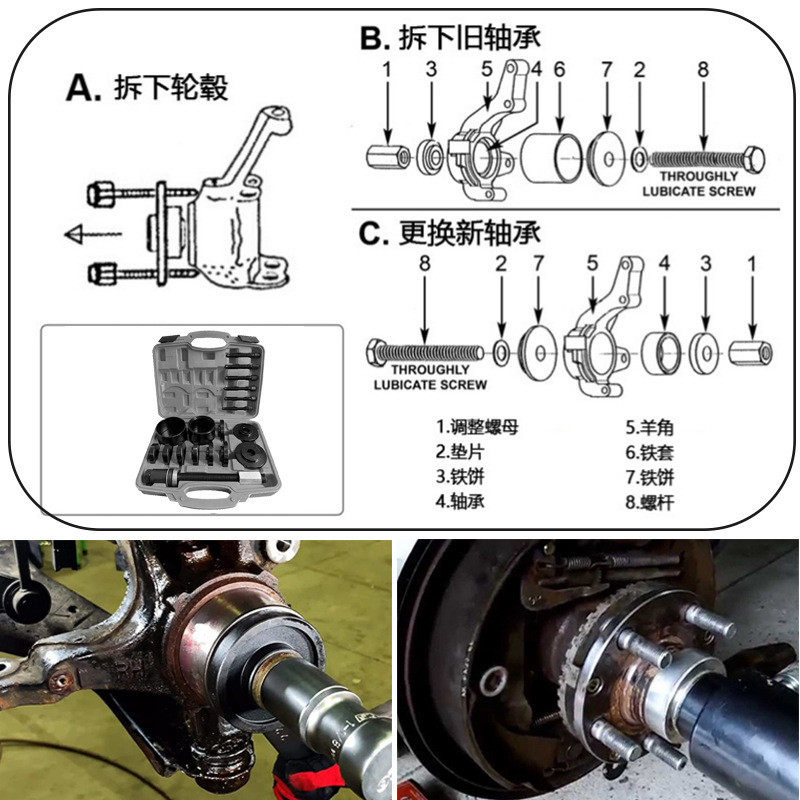 热销19件套汽车前轮轴承拆装安装工具免拆式羊角培林拆卸器压轴承