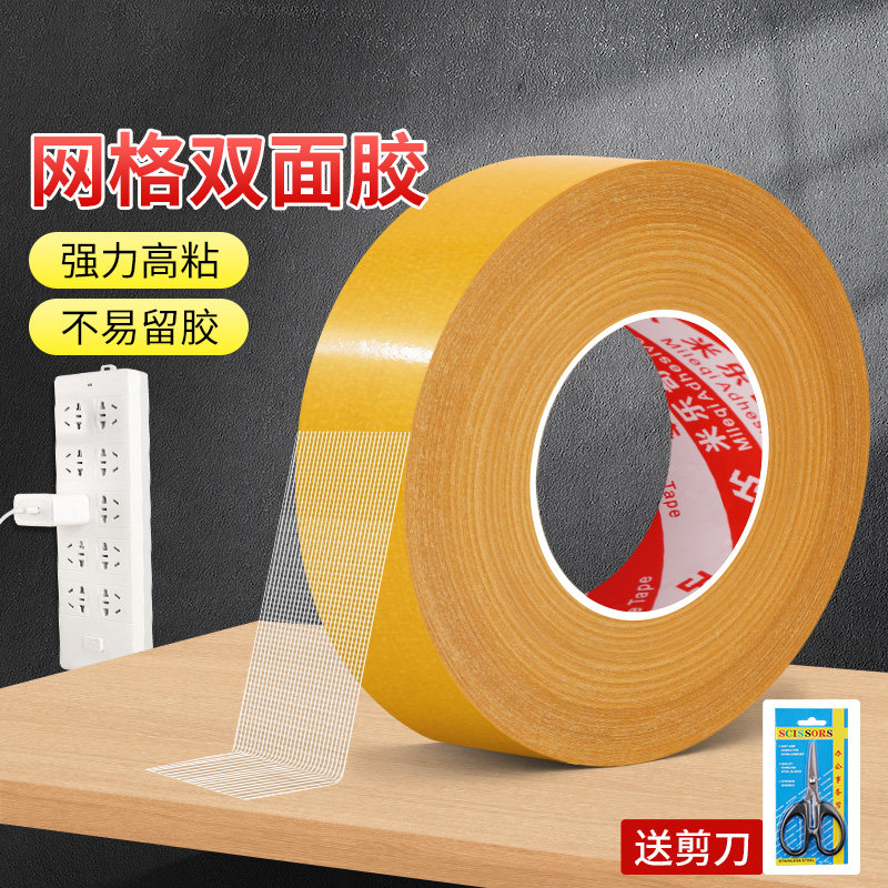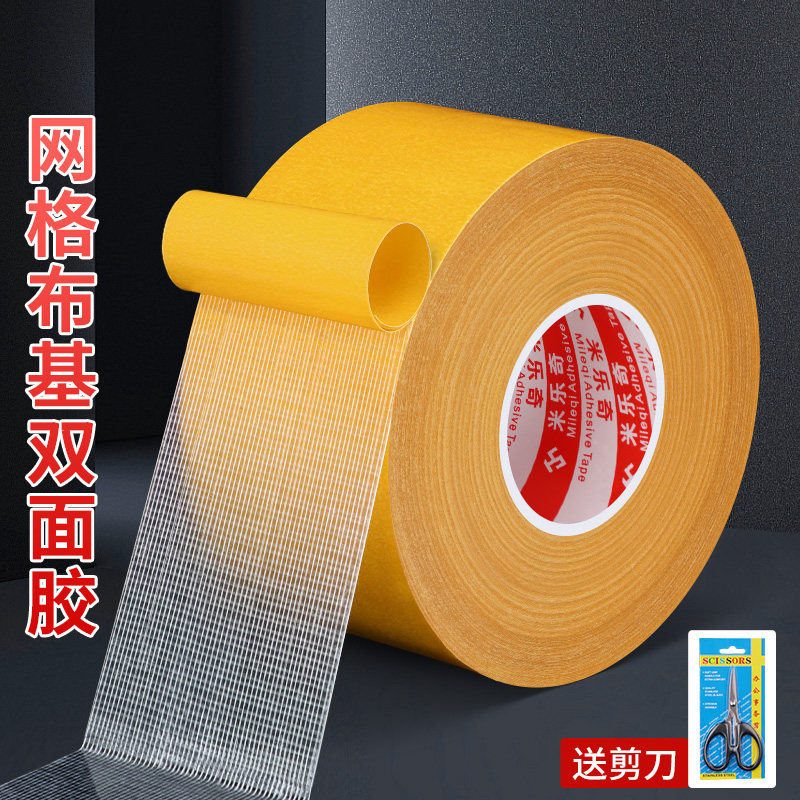 米乐奇网格布基胶婚庆酒店地毯固定胶带防水布基双面胶强力无痕壁纸海报墙布易撕透明网格双面胶带