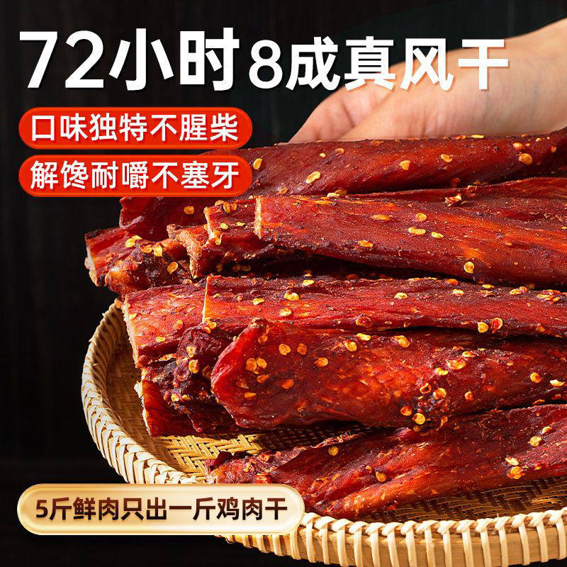 风干鸡肉干鸡胸肉干肉条麻辣耐嚼解馋小吃休闲零食品官方旗舰店