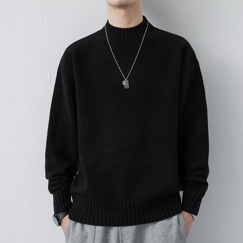 半高领毛衣男冬季2025新款潮流宽松一体绒保暖休闲打底针织衫上衣